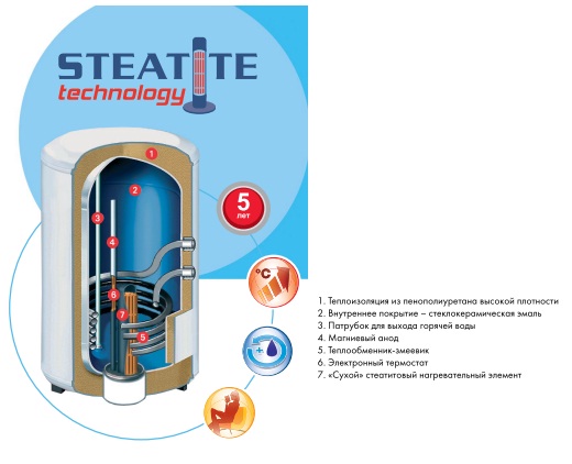 «Сухой» стеатитовый керамический нагреватель производит подогрев воды значительно быстрее, чем нагреватель, который имеет трубчатую форму.
