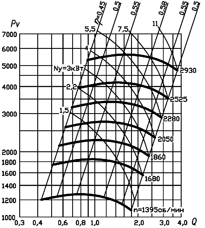 Параметры эксплуатации вентилятора ВВД-5 (3,0/1500)