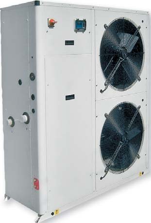 Конструкция, Aqualogic AQL BLN: В конструкцию чиллера с воздушным охлаждением конденсатора входят хладагент типа HFC410А, два спиральных компрессора мощностью 90Вт, пластинчатый испаритель, который подсоединяется с помощью наружной газовой резьбы, два конденсатора, циркуляционный насос и два вентилятора.