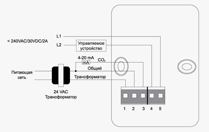 К датчику СО2 предлагается дополнительный акссеcуар - Блок питания TRF 24 AC. Он применяетcя для подключения датчиков к сети питания 220 B или 120В AC.