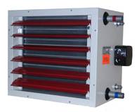 Данные механизмы состоят из воздушного нагревателя, вентилирующего изделия с электрическим двигателем и створчатого клапана, которые размещенные в одном корпусе. Для изготовления корпуса применяют оцинкованную листовую сталь со слоем синтетический материал и качественную краску. Оснащенные однофазным двигателем с одной скоростью и напряжение 230 В, трехфазным с одной, двумя, тремя скоростями, и напряжением 400 В; трехфазный защищенный от взрывов. Подсоединяют к электросети используя клеммную коробку. Она размещенная на корпусе. Класс изолирования обмотки B, класс безопасности электрического двигателя IP44. Воздушный нагреватель имеет два, три ряда трубки оребрения из алюминия с полезным давлением 1,6 МПа, как тепловой носитель – вода с самой высокой температурой 120 градусов на входе.