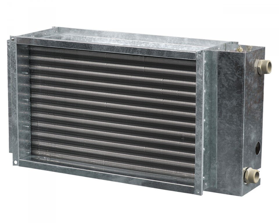 Корпус нагревателя нкв выполнен из оцинкованной стали, трубные коллекторы изготовлены из медных трубок, поверхность теплообмена – из алюминиевых пластин.Канальные водяные нагреватели выпускаются в двух-, трех- или четырехрядном исполнении и предназначены для эксплуатации при максимальном рабочем давлении 1,6 МПа (16 бар) и максимальной рабочей температуре воды +100°С. На выходном коллекторе нагревателя нкв предусмотрен патрубок для установки погружного датчика измерения температуры или защиты от замораживания калорифера. Канальные водяные оборудованы ниппелем для обезвоздушивания системы.
