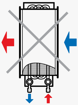 | Подключение против направления потока воздуха | Подключение по направлению потока воздуха |