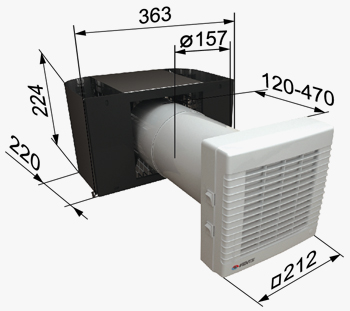 Конструкция проветривателя проста и состоит из керамического акумулятора энергии, телескопического канала, осевого вентилятора для нагнетания и вытяжки воздуха, воздушных фильтров для очистки воздуха, наружного ковпака и декоративной решетки.