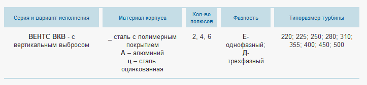 Типоразмер турбины: 220; 225; 250; 280; 310; 355; 400; 450; 500