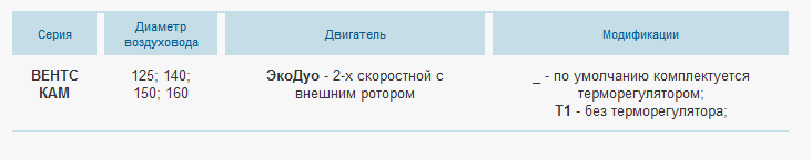 В производстве вентилятора применяются однофазные двухскоростные двигатели с внешним ротором для работы в сети 230/50Гц. Класс изоляции двигателя – F. Они имеют встроенную теплозащиту с автоматическим перезапуском. Двигатель вынесен из воздушного потока и снабжен рабочим колесом с загнутыми лопатками вперед. Для длительного срока работы используются подшипники качения.