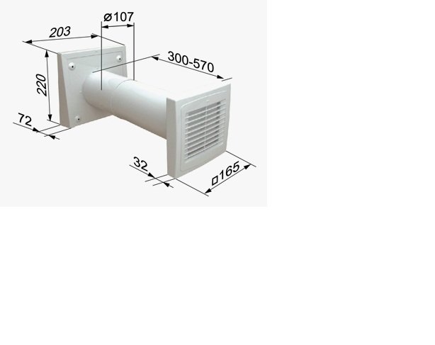 Канал из пластика ПВХ имеет круглую форму, белого цвета с длиной 300-570 мм и диаметром 100 мм.