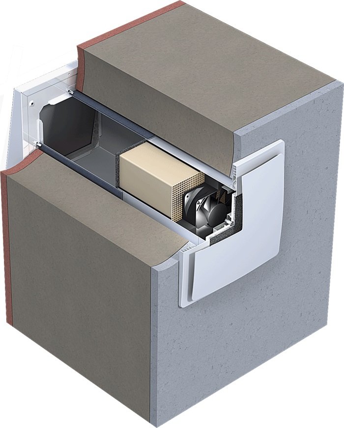 Вентиляции жилых помещений и офисов. Он обеспечивает поступление в помещение очищенного и вывод отработанного воздуха. Регулирует влажность помещения и предотвращает появление плесени.