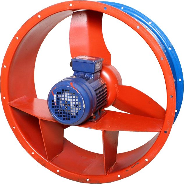 Вентилятор с трехлопастным рабочим колесом, в специальном исполнении для перемещения взрывоопасных смесей.