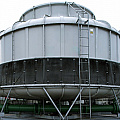 ![]() Градирня (охолоджувальна вежа) - спеціальний пристрій призначене для охолодження великої кількості води. Охолодження здійснюється спрямованим потоком атмосферного повітря. Застосовуються градирні в системах оборотного водопостачання, щоб охолодити теплообмінні апарати (аварійні електрогенератори, конденсатори холодильних установок). У промисловості градирні пріменяються для охолодження холодильних машин.