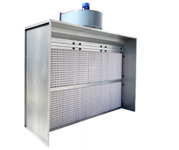 Вентилятор утворює розрідження всередині камери, за рахунок системи фільтрів розрідження створює рівномірний аеропоток в робочій зоні. Потік повітря гарантує переміщення туману і пилу на поверхню фільтру, а також видалення парів розчинників за межі приміщення. Очищення повітря від лакофарбових забруднень проходить в два ступені. Перший - високотехнологічний паперовий фільтр, очищає аеропоток до 97%, дозволяє накопичувати близько 15 кг лакофарбових відкладень на 1 м2. Другий - скловолоконний Пойнт Стоп G3, гарантує очищення до 95% і може накопичувати до 10 кг таких відкладень. Загалом комбінація цих фільтрів очищає повітря до 99%.