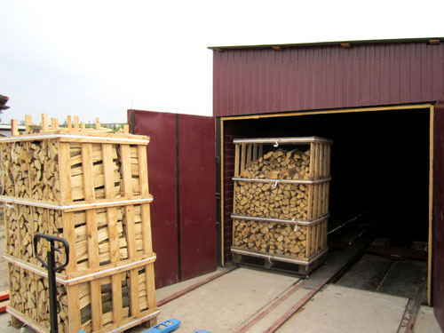 Для сушіння дров, щільно покладених в контейнери висотою близько 2 м